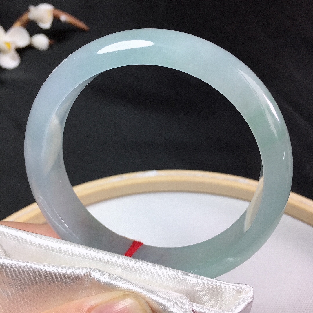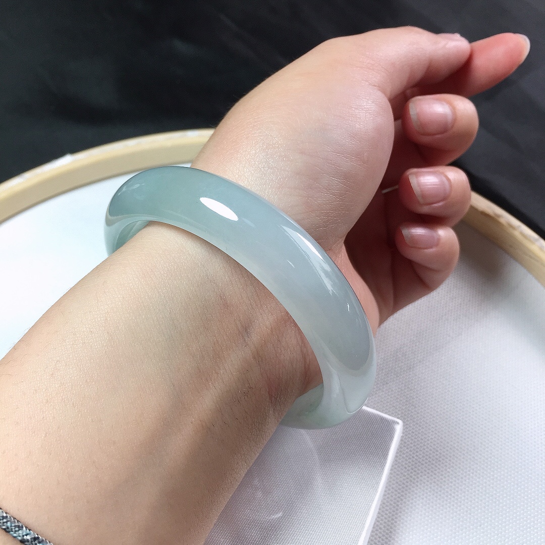 带底色58.8正圈,佩戴翡翠手镯给人一种温婉的感觉。
