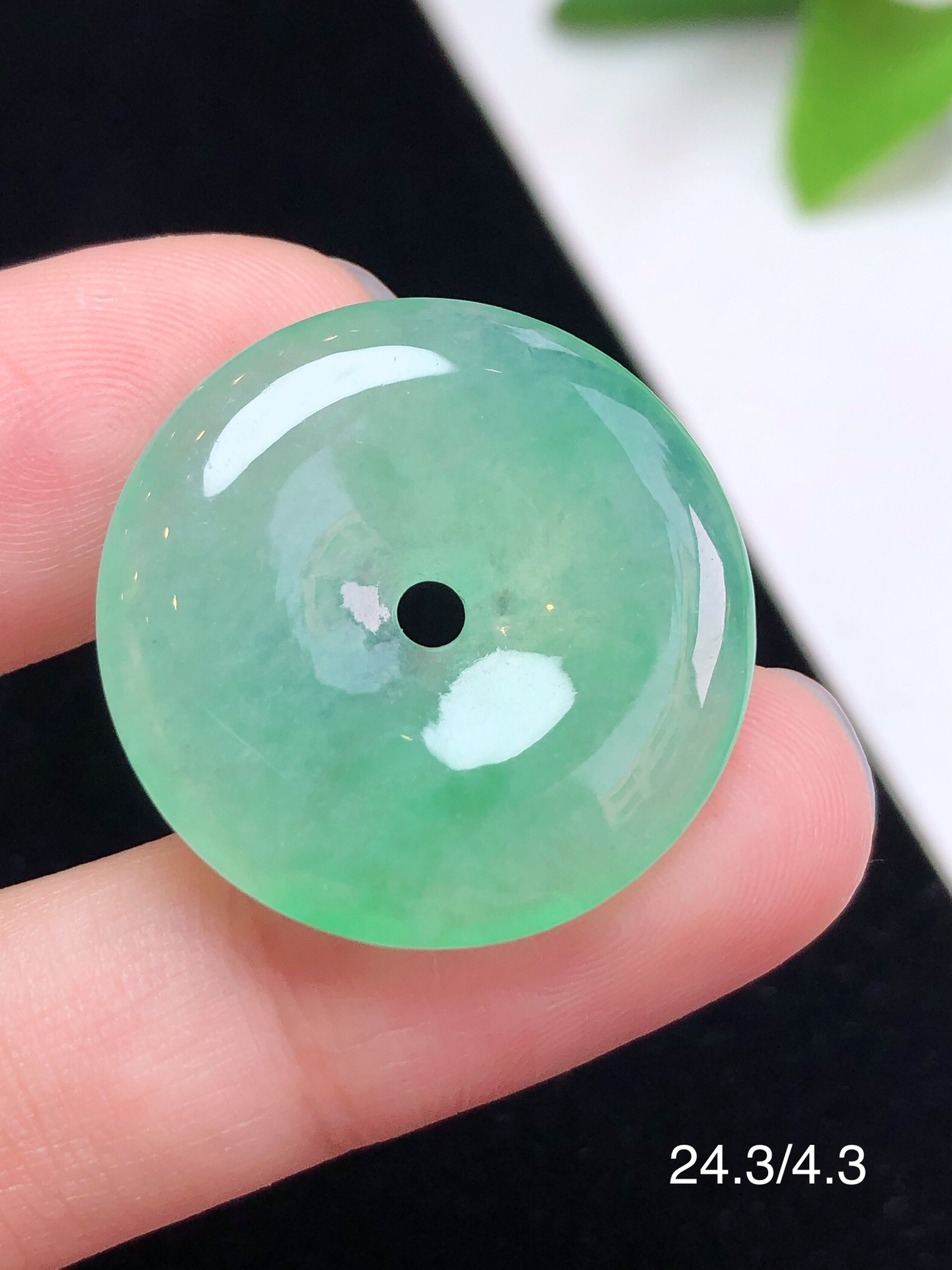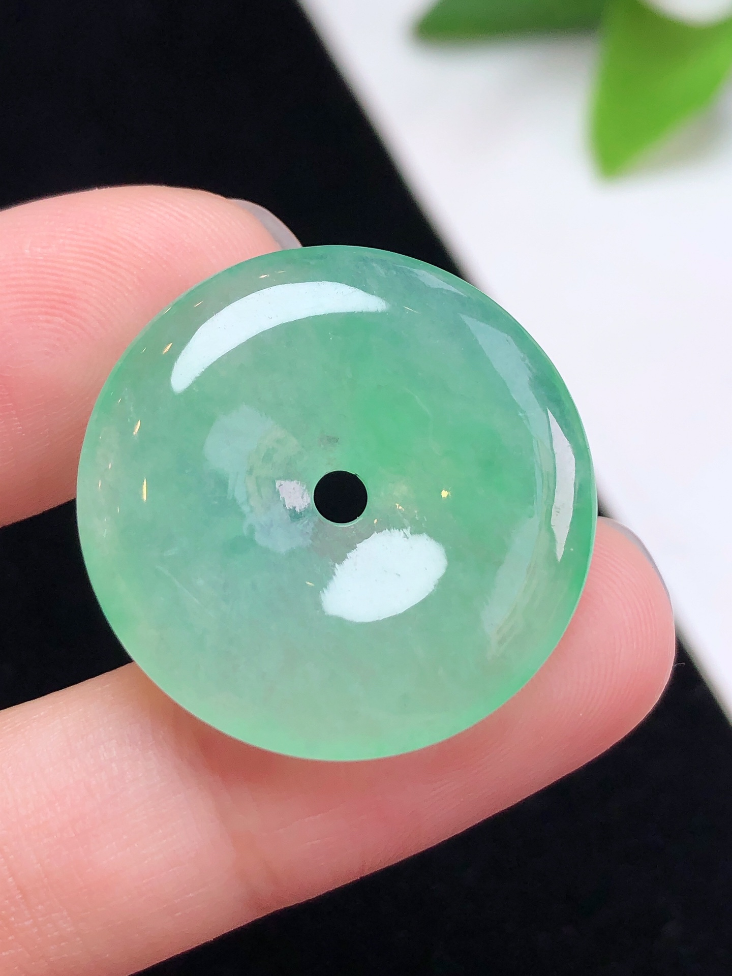 冰绿平安扣,冰润清爽,无需太多的繁复,寓意平平安安,遇事逢凶化吉。